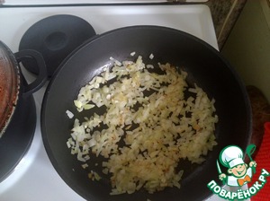 Лук нарезать мелким кубиком. Поджарить на масле с добавлением сахара до прозрачности.