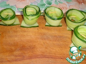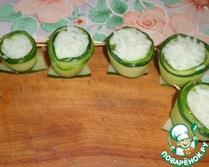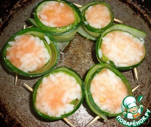 Рецепт «Рисовая закуска в огуречных рулетиках»: