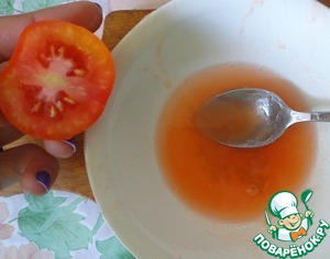 С помощью чайной ложечки аккуратно поливаем рис томатным соком.