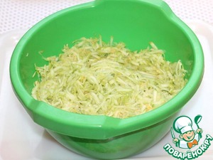 Кабачки вымыть и натереть на крупной тёрке. У меня молодые кабачки, поэтому семечки и кожура мягкие.