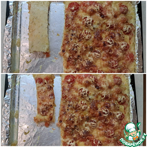 Возвращаем пирог в духовку и запекаем ещё 10-15 минут. Надо, чтобы сыр расплавился.