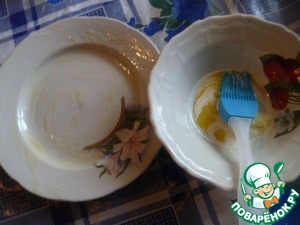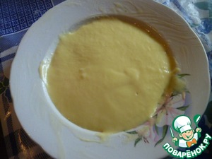 Кладем на тарелку 2 ст. л. теста и равномерно распределяем по дну тарелки.
