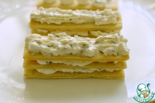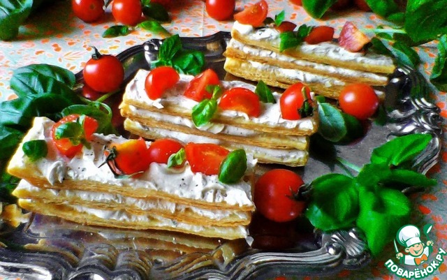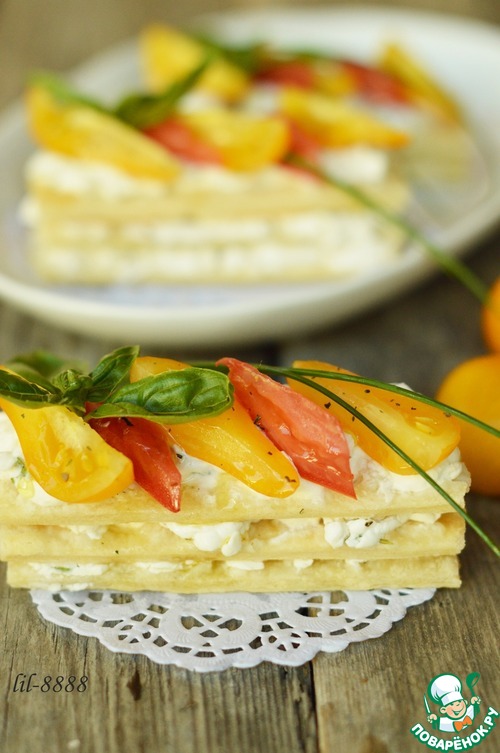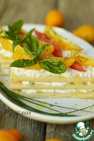 Рецепт «Мильфей с сырно-базиликовым кремом и помидорами»: