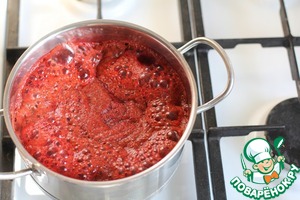 Складываем все ингредиенты (сок и жмых) в кастрюлю с толстым дном.