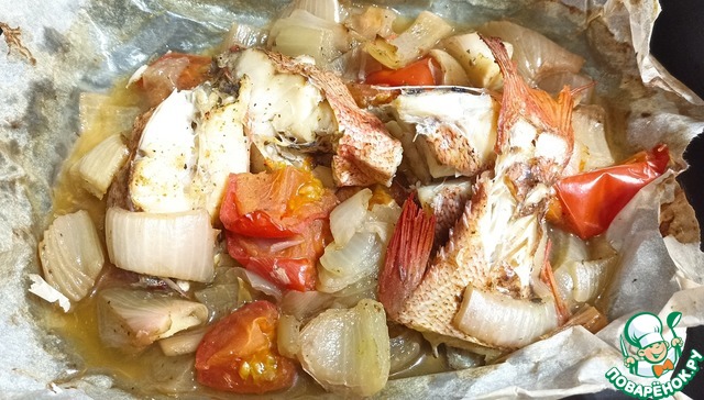 Рецепт «Рыба с помидорами и луком в пергаменте»: