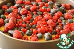 4. Печь пирог 20 минут. Затем вынуть пирог. аккуратно выложить сверху ягоды и печь еще примерно 30 минут, до сухой лучины.