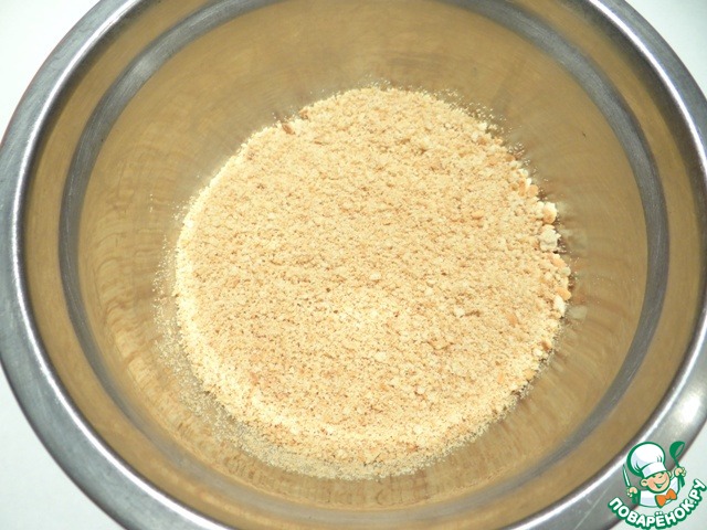 Крекер измельчаю с помощью мясорубки или кухонного комбайна.