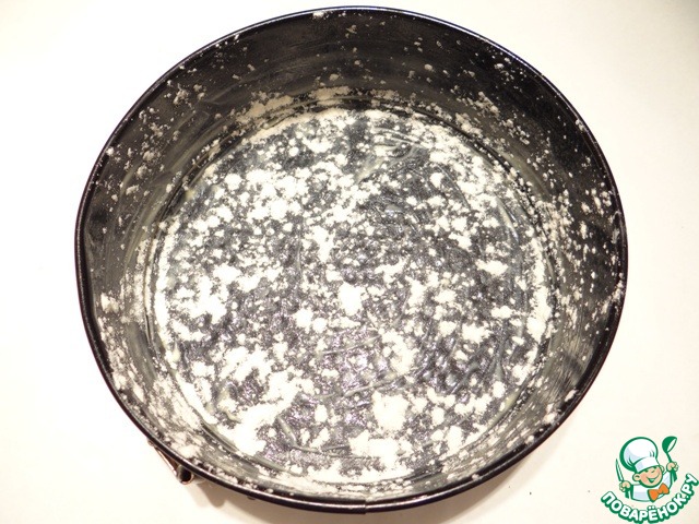 Разъемную форму диаметром 20 см смазываю сливочным маслом и посыпаю мукой.