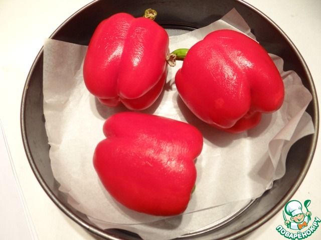 Перец мою, выкладываю в форму, застеленную пергаментом (или на противень).