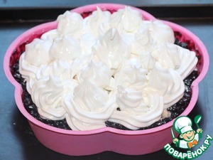 С помощью ложки или корнетика, разложите крем на остывший кекс. Верните кекс вместе с кремом в духовку еще на 10 минут, пока крем не начнет слегка коричневеть. Температуру увеличьте до 220 гр.