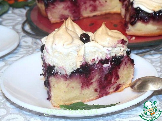 Затем выложите засахаренную смородину и отправляйте выпекать в духовку на 30 минут. Готовность кекса проверяйте острой деревянной палочкой.