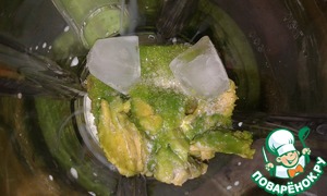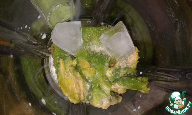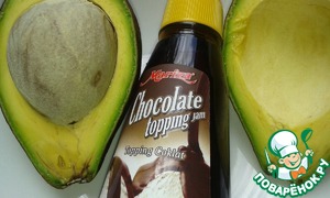 Ложкой выскребаем мякоть авокадо и помещаем в блендер, туда же молоко, воду, и сахар или мёд (если не будете использовать шоколадный сироп), можно добавить льда. Взбиваем.