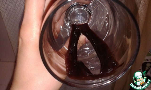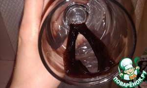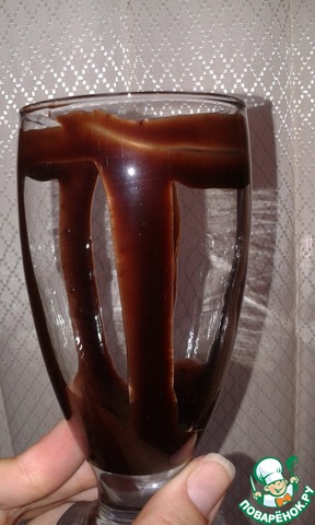 Если хотите украсить бокал шоколадным сиропом, то сделайте узор изнутри и дайте шоколаду подсохнуть, минут 5 будет достаточно.