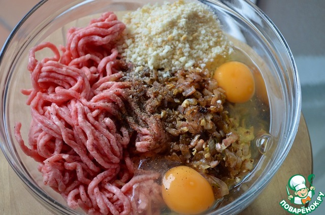 - Фарш мясной (смесь говядины и свинины) — 800 г