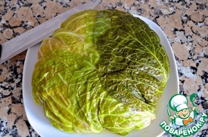 5. Бланшировать капустные листы в кипящей воде 2 минуты, затем остудить в холодной воде.