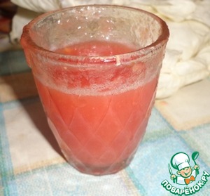 С помощью соковыжималки или вручную отжимаем сок из помидор.