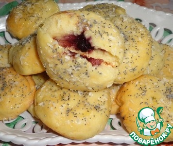 Нежные, сладкие булочки из творожного теста с черничным джемом. Готовятся быстро и просто. Апельсиновый сироп придает булочкам мягкость и сладость.