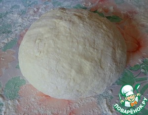 Небольшими порциями добавляем муку и замешиваем тесто. Я указала 3 стакана муки, может пойти больше или меньше, необходимо смотреть по тесту, оно не должно прилипать к рукам. Даем тесту отдохнуть 15-20 минут.