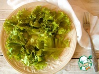 На порционную тарелку раскладываем вымытые и высушенные листья салата. |