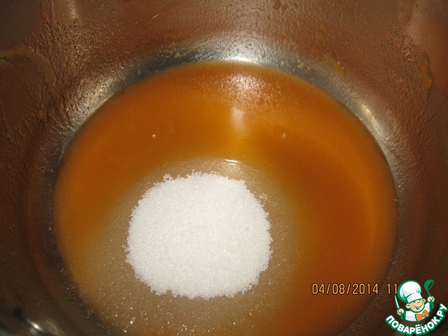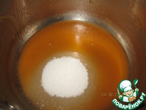 • Готовим сироп: заливаем кипятком сахар и перемешиваем до полного растворения. Воды примерно 150 - 100мл.