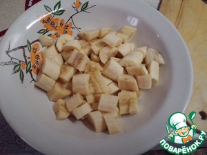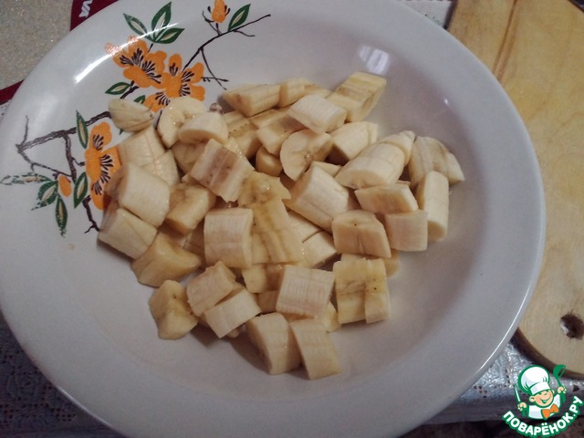 Очистить бананы от шкурки, нарезать, положить в миску.