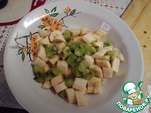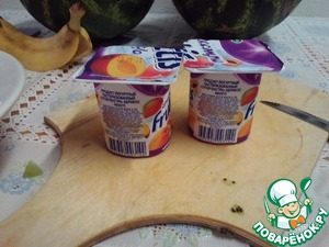 Затем добавить во фрукты и шоколад вот такой йогурт (как на фотографии) и перемешать.