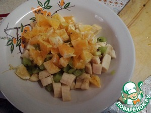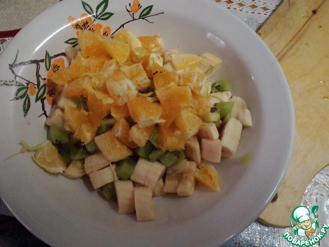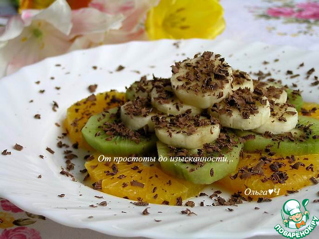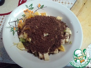 Затем натереть на мелкой терке шоколад, добавить к фруктам.