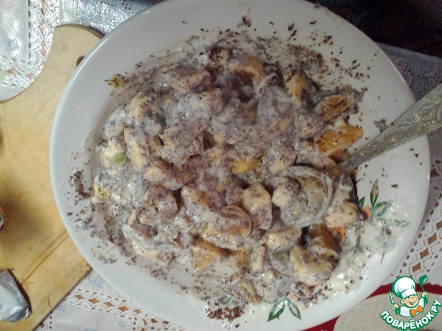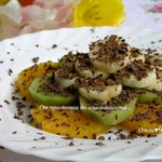 PS -Теперь тебе, по моему мнению, надо обратить внимание на оформление уже готовых блюд, вот этот салатик из тарелочки если бы аккуратно переложить в другую., чистую вазочку какую-нибудь, не испачкав края, а сверху ещё дополнительно присыпать тёртым шоколадом, то было бы вообще супер! Да - и ещё убрать оттуда ложку, которой ты перемешивал. Но от меня лови +)))