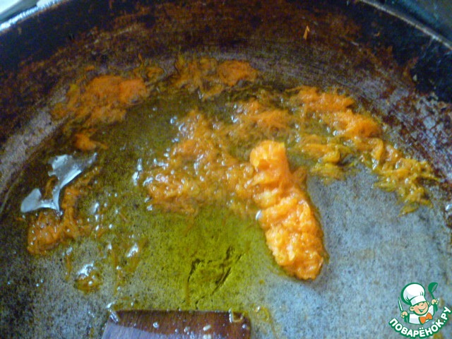 Когда вариант второй, то я не делаю зажарку с луком, а слегка пассерую тертую на мелкой терке морковь на растительном масле.