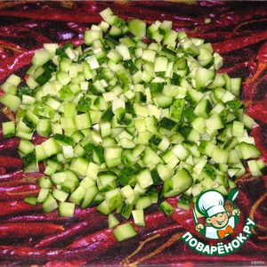 Огурцы нарезать маленькими кубиками