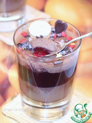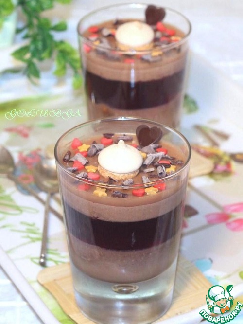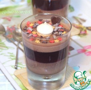 И последний, третий слой - шоколадный, разливаем и опять ставим в холодильник на 30 мин. Достаем, украшаем печеньем, тертым шоколадом и наслаждаемся.