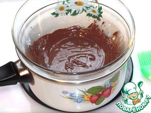 Выливаем сливки в растопленный шоколад, перемешиваем и добавляем 1/2 часть желатина. Ставим миску с шоколадом на водяную баню и прогреваем до растворения крупинок желатина. В шоколадную смесь можно добавить 1 ст. л. рома или шоколадного ликера, но это по желанию.