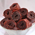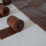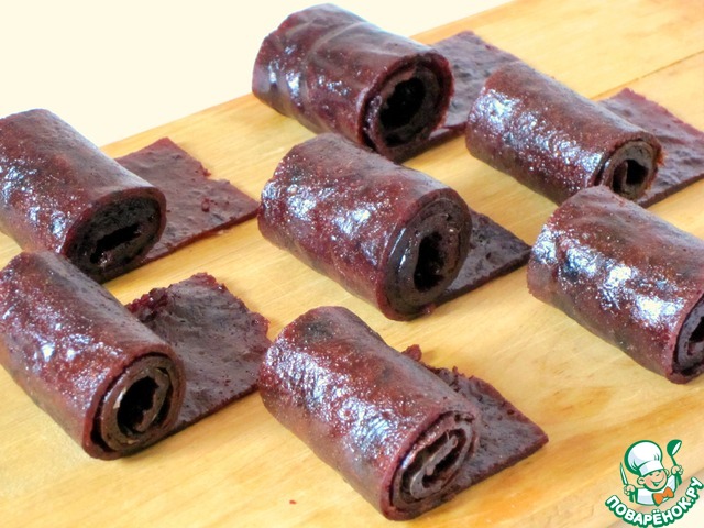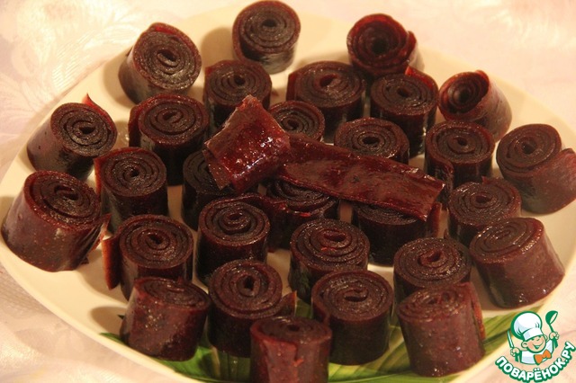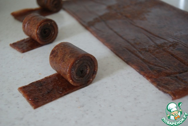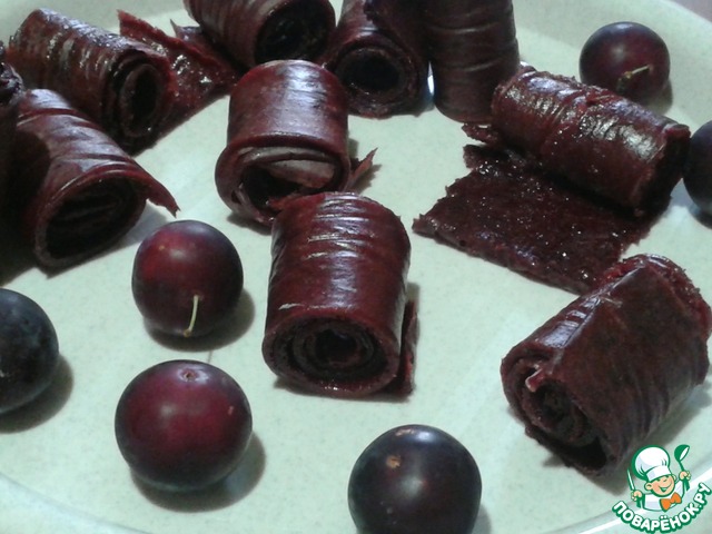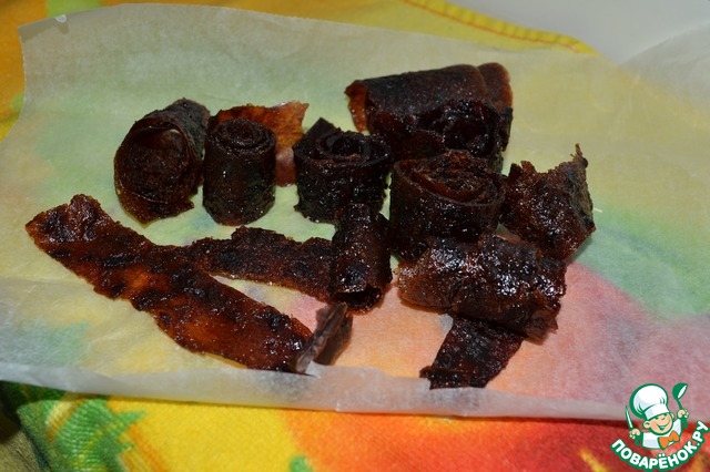 Выкладываем сливовое пюре слоем толщиной 5 мм на пергамент или силиконовый коврик, положенный на противень. Сушим в разогретой до 70 градусов духовке около 8 часов.