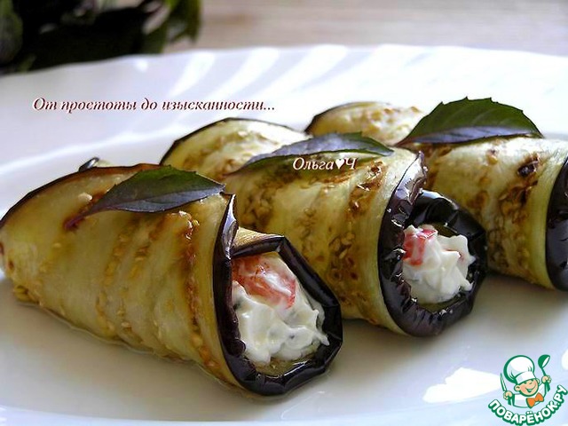 Рецепт «Рулетики из баклажанов с творожным сыром»: