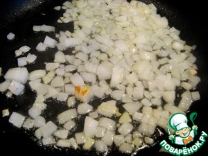 Мелко порезать и обжарить лук на растительном масле до прозрачности.