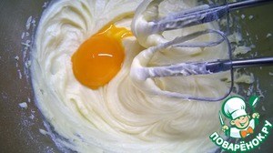 Теперь будем добавлять по одному желтку, продолжая взбивать на средней скорости.