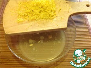 Пока вариться сиром, натираем цедру и выжимаем сок из лимона. Остатками воды заливаем желатин, когда набухнет нагреваем пока не раствориться. Желатин не должен кипеть.