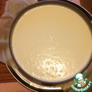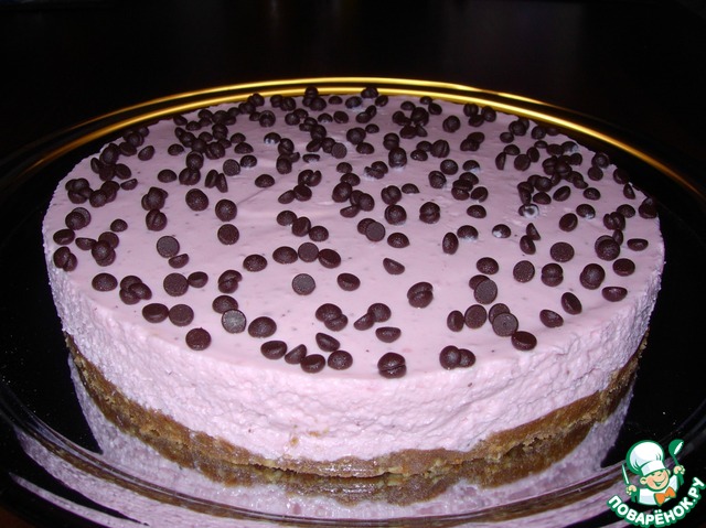 И выкладываем в форму на основу из печенья. Убираем охлаждаться в холодильник на несколько часов, пока торт не застынет. Лучше на ночь.