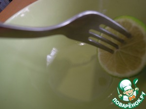 Выжать сок лайма. Если нет специального приспособления, можно использовать вилку, прокручивая её внутри половинки плода.