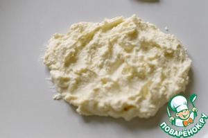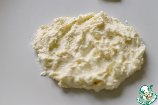 5. Творожную массу взбить с сахаром и ванильным сахаром. Сливки взбить и ввести в творожную массу.