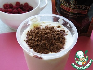 Во вторую половину йогурта добавляем 2ст. л сахара и 2ч. л какао.