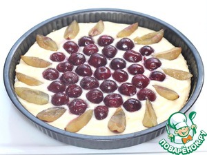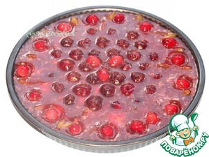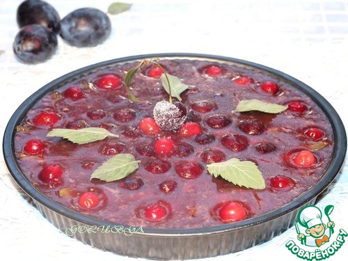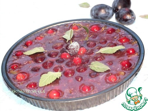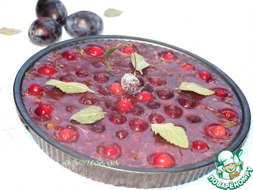 Сверху кладём ягоды: черешню, клюкву и дольки сливы. Ягоды могут быть и другие, главное, чтобы их было несколько видов (разные).