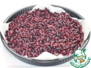 Насыпаем сверху фасоль и ставим в разогретую духовку на 15 минут при 190°С. Затем убираем фасоль и ещё 10 минут допекаем. Готовый корж достаем из духовки и даём остыть.