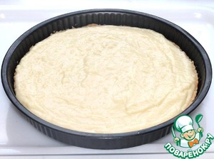 Достаем тесто из холодильника, выкладываем на круг и раскатываем по диаметру формы. Протыкаем вилкой тесто в нескольких местах.