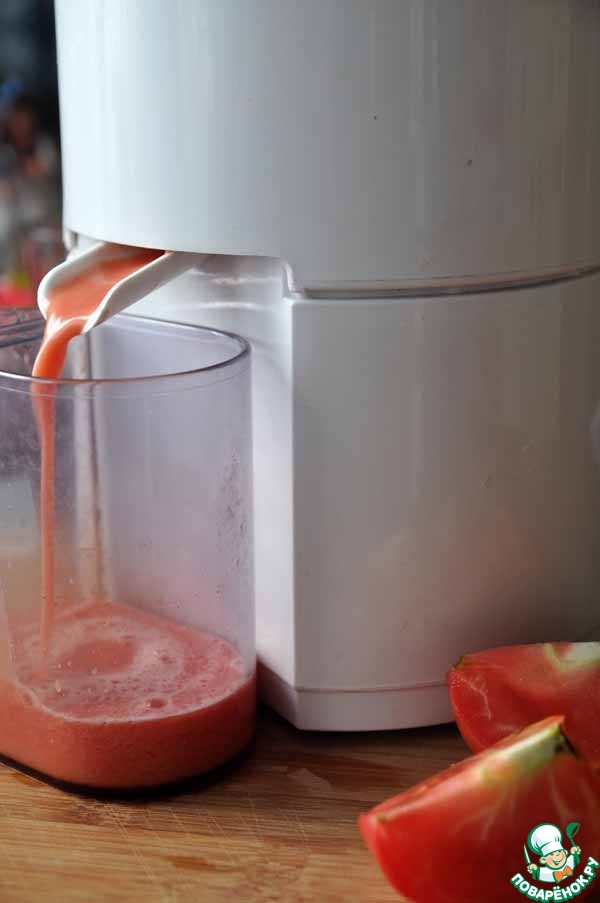 Для этого получаем свежевыжатый томатный сок из помидоров.