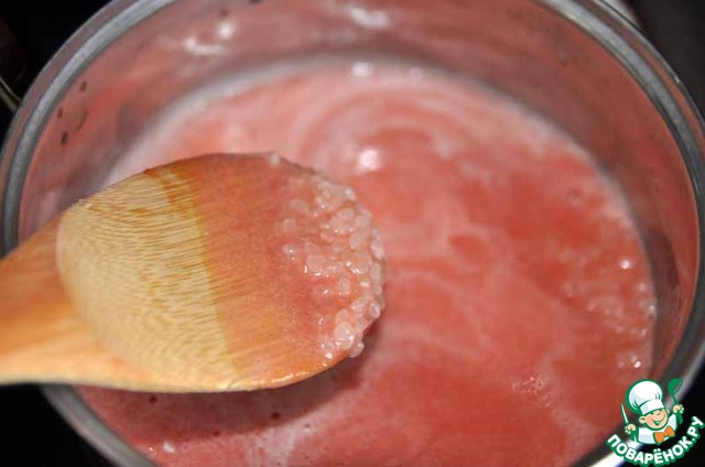 Рис промываем, заливаем соком, доводим до кипения и варим 25 минут на медленном огне.