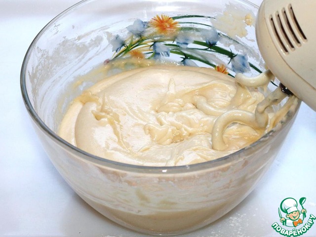 И постепенно введите в яичную смесь. Взбейте тесто до однородности.