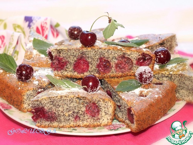 14 августа, — один из крупнейших праздников православных христиан — Первый Спас. В народе его еще называют Маковеем или праздником цветов. Накануне Первого Спаса еще издавна готовили «маковейский цветок» (букет из мяты, календулы, чабреца, мелиссы, бархатцев и, конечно же, мака) и освящали его в церкви. Священный мак служил оберегом от злых сил. Люди верили, если обсыпать маковым семенем дом, ни одна ведьма сюда не проникнет. Сегодня хозяйки пекут коржи и пироги с маком. Я вам предлагаю испечь "Маковый пирог с вишней".