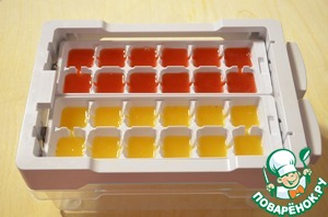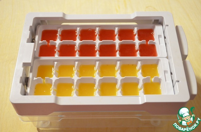 3. Заполнить формочки для льда апельсиновым и арбузным соком.