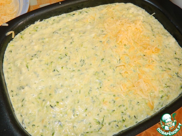 Вылить в смазанную маслом форму и посыпать сверху сыром.